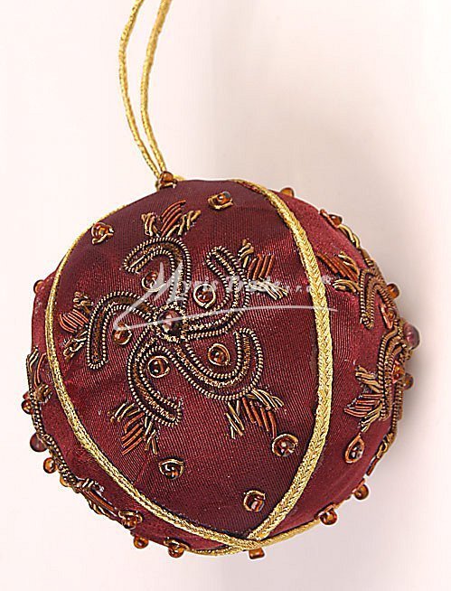 textilní vánoční koule pošívaná korálky ručně vyšívaná vánoční koule je pošitá korálky a kovovým drátkem ve zlaté barvě