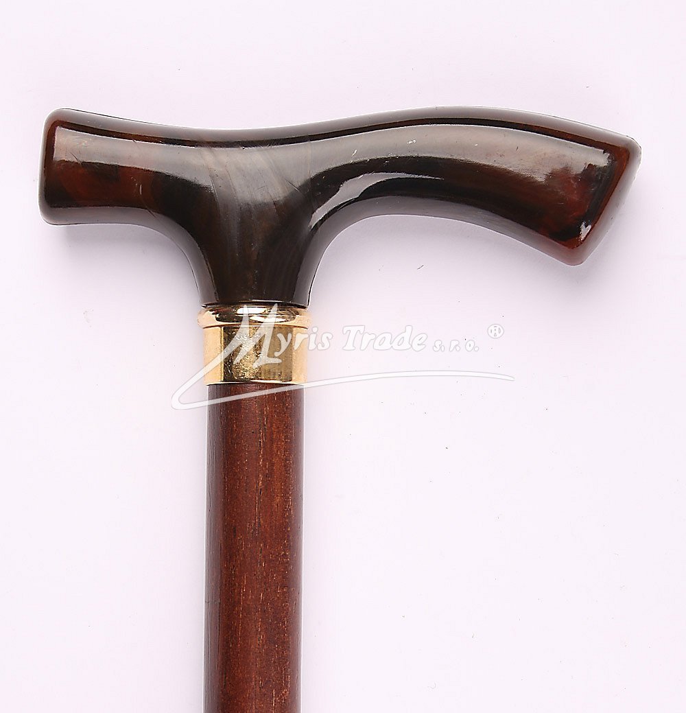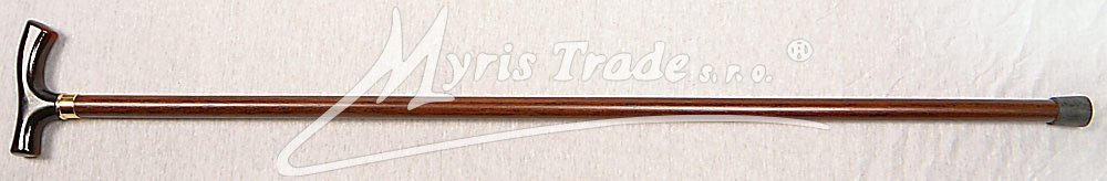 plně funkční vycházková hůl z masivního, tmavě hnědého dřeva s rovnou rukojetí, umožňující pevné opření ruky