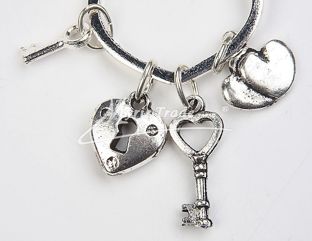 délka: 12,00 cm přívěšky: spojená srdce, klíček k srdci, srdce-zámek s klíčkem