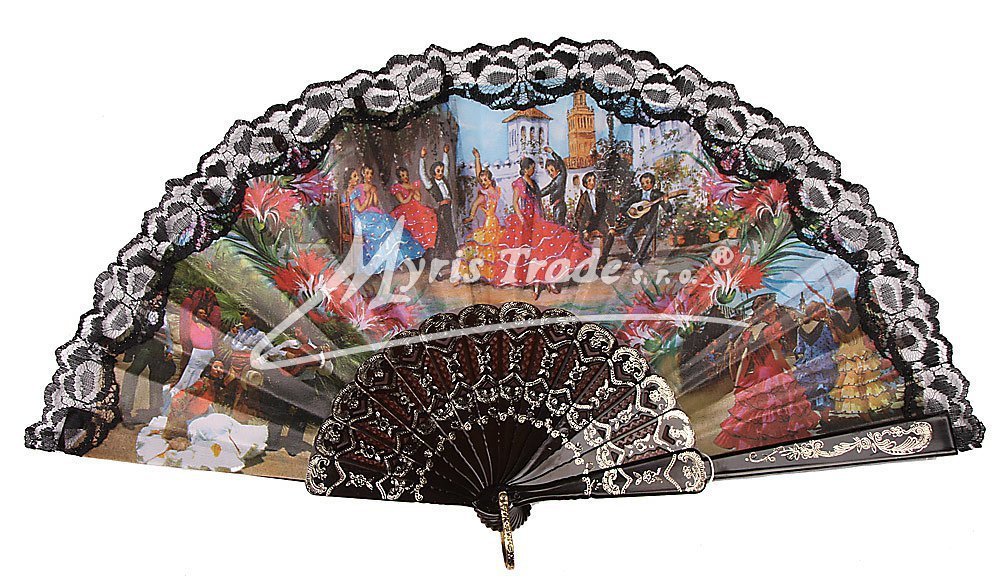 plastový vějíř s klasickými španělskými motivy lze použít nejen jako krásnou dekoraci, ale je i plně funkční