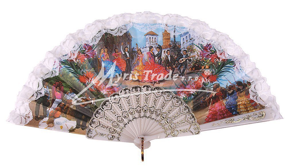 plastový vějíř s klasickými španělskými motivy lze použít nejen jako krásnou dekoraci, ale je i plně funkční