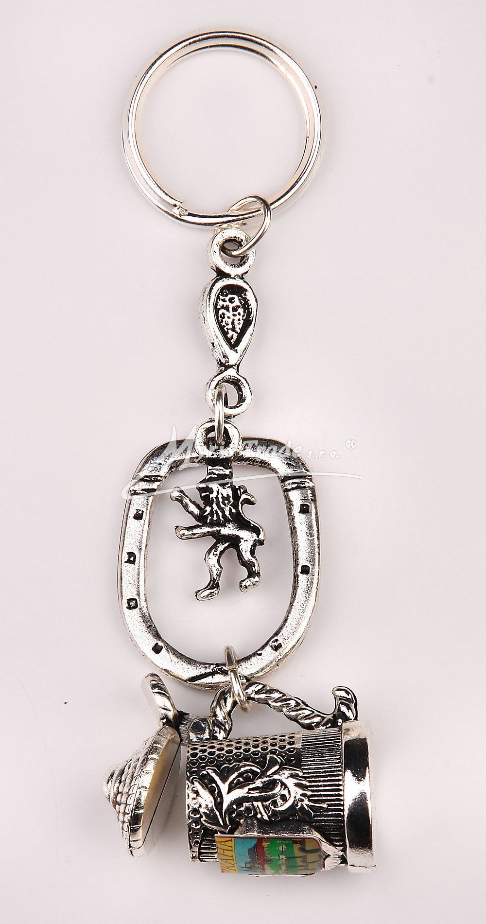 postříbřený přívěšek na tašky s českým lvem a pivním korbelem s otvíracím víkem s motivem Prahy