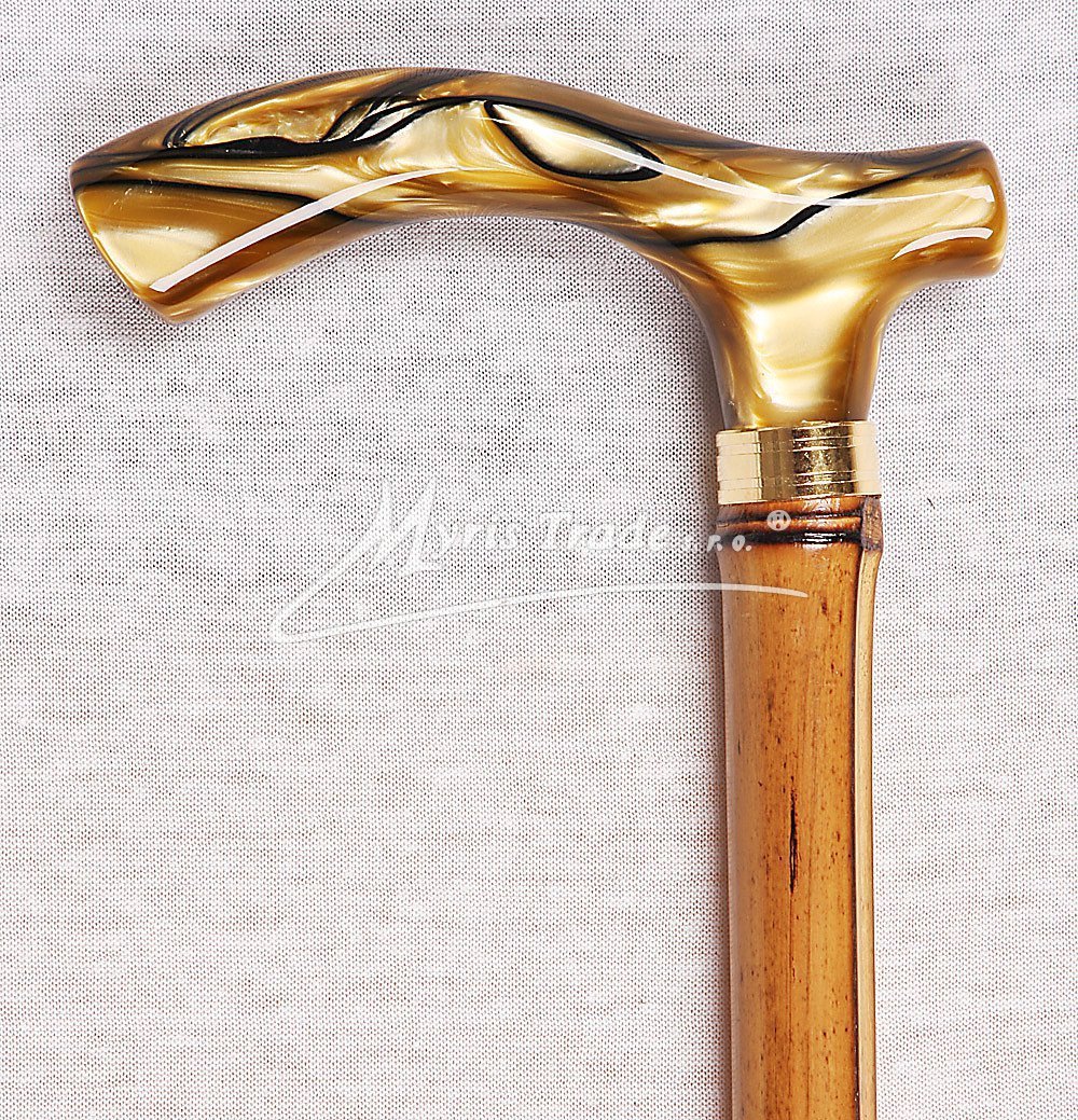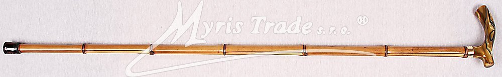 lehká, plně funkční vycházková hůl z bambusu se zlato-černou klasickou rukojetí
