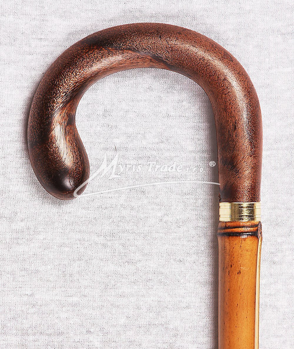 lehká, plně funkční vycházková hůl z bambusu s tmavě hnědou klasickou kulatou rukojetí
