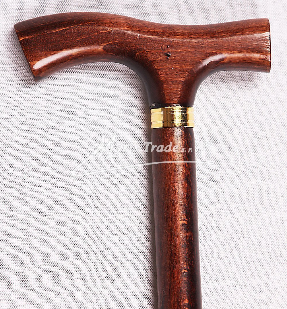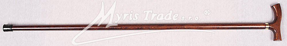 plně funkční vycházková hůl z masivního, tmavě hnědého dřeva s rovnou rukojetí, umožňující pevné opření ruky