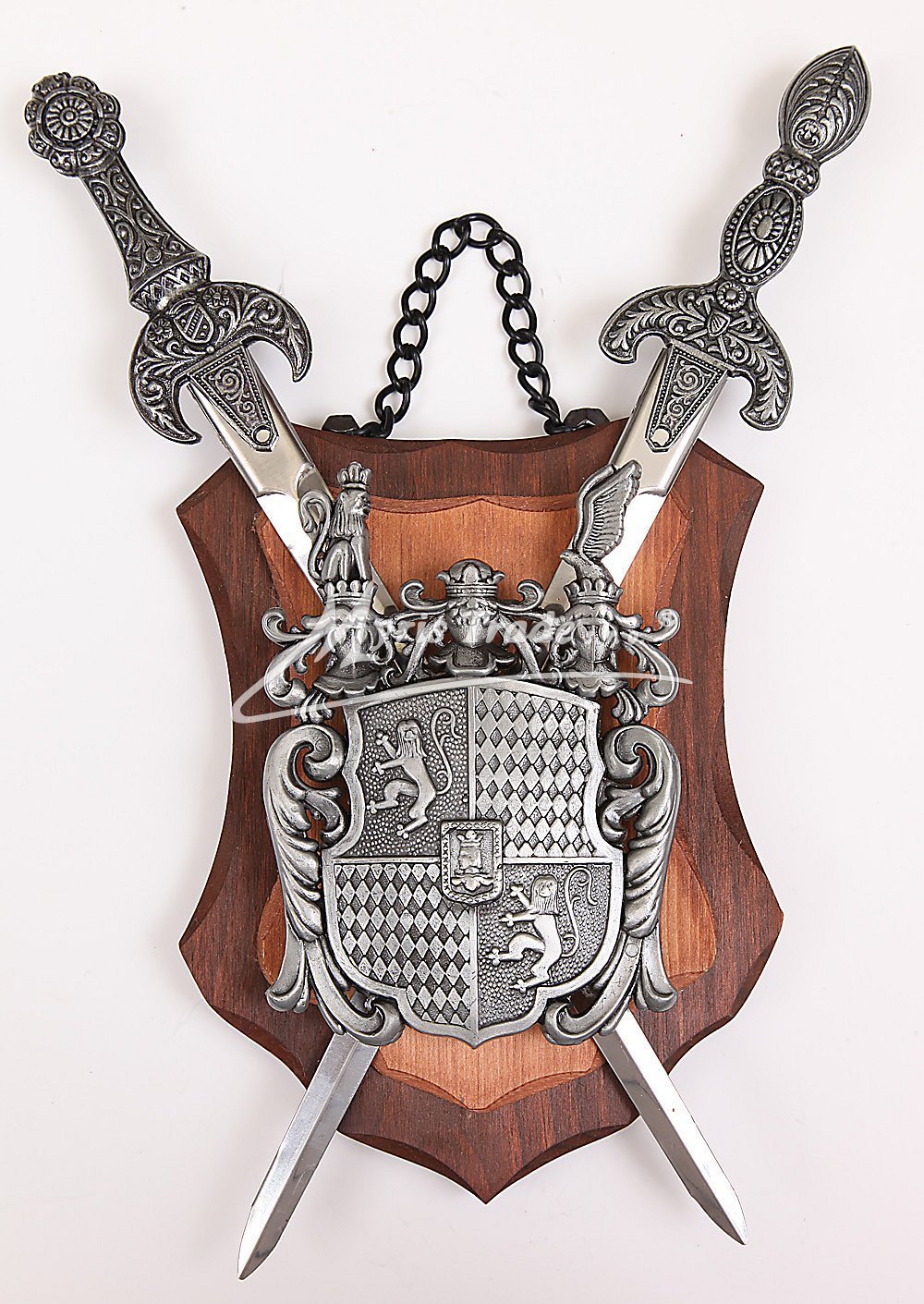 erb na dřevěném podkladu v kombianaci tmavého a světlého dřeva - v provedení z šedého kovu