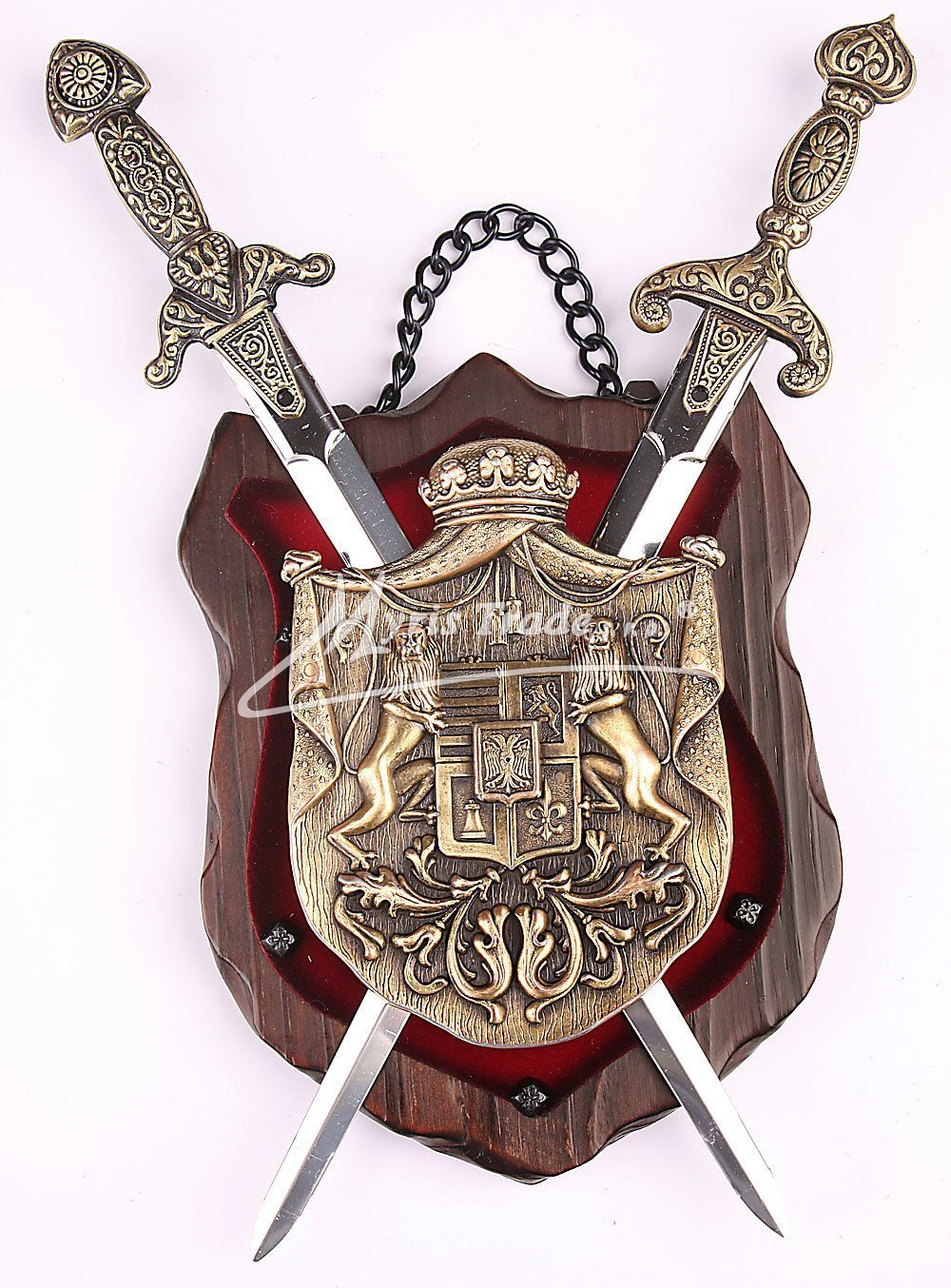erb na dřevě s červeným sametem - v provedení z kovu barvy bronzu