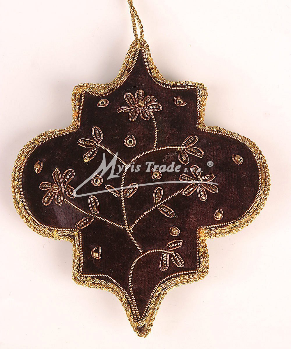 Textilní dekorace pošitá korálky. List může sloužit jako vánoční ozdoba, nebo i jako dekorace mimo vánoční sezónu.