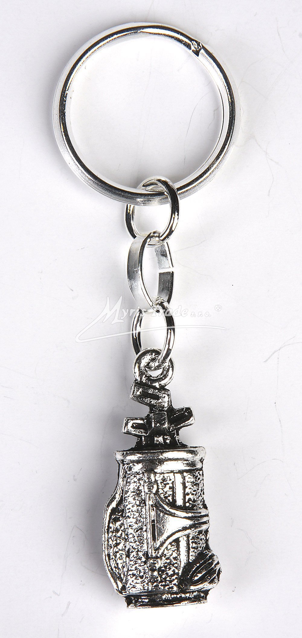 přívěsek na klíče ze stříbrného kovu s golfovým bagem
