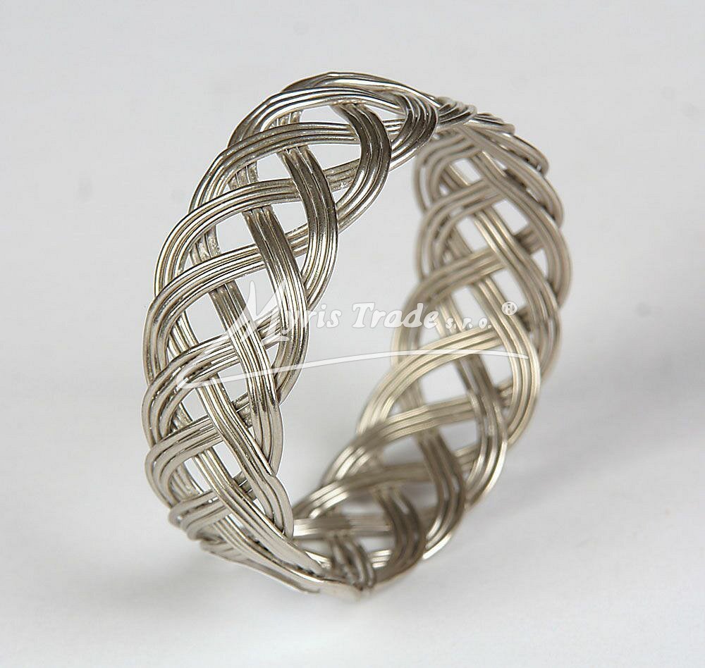 ozdobný kroužek na ubrousek ze stříbrného kovu z ozdobně propletených drátků průměr: 4,00 cm