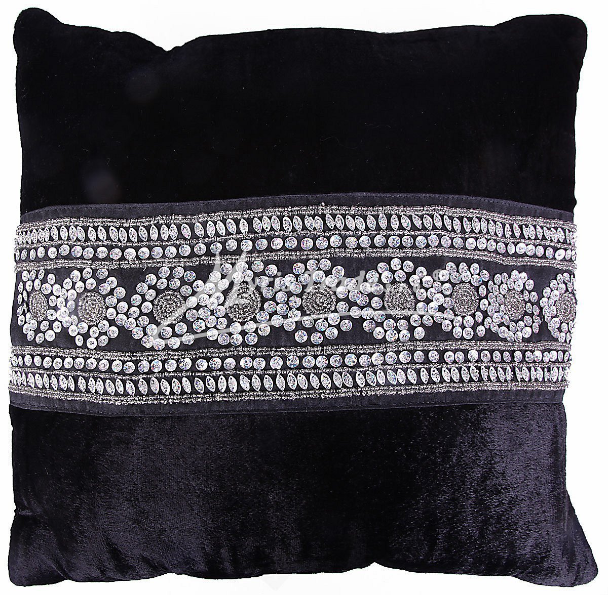 dekorační, ručně vyšívaný potah na polštářek v černé barvě