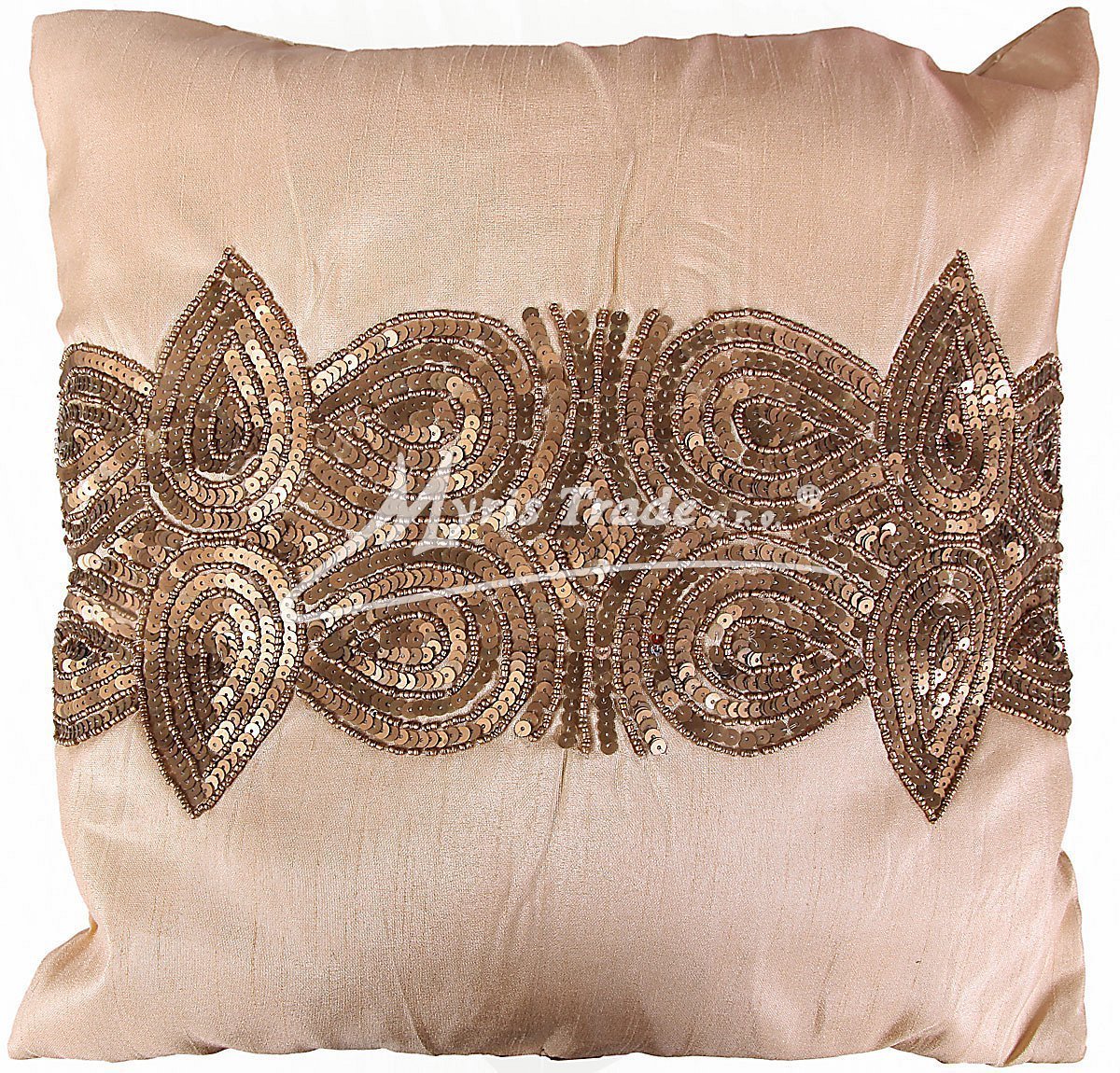 dekorační, ručně vyšívaný potah na polštářek v béžové a bronzové barvě