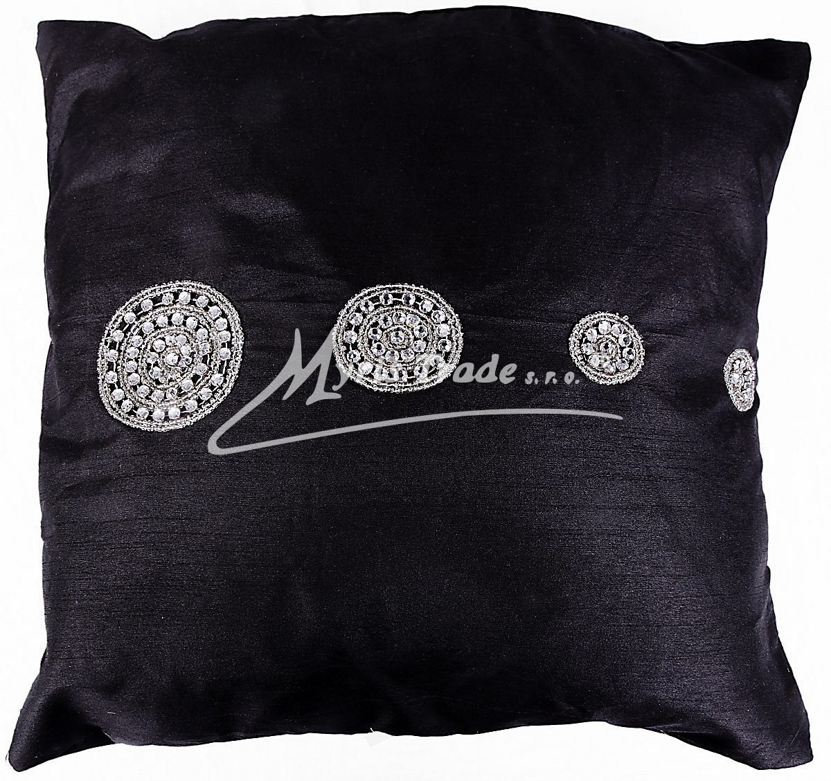 dekorační, ručně vyšívaný potah na polštářek v černé barvě