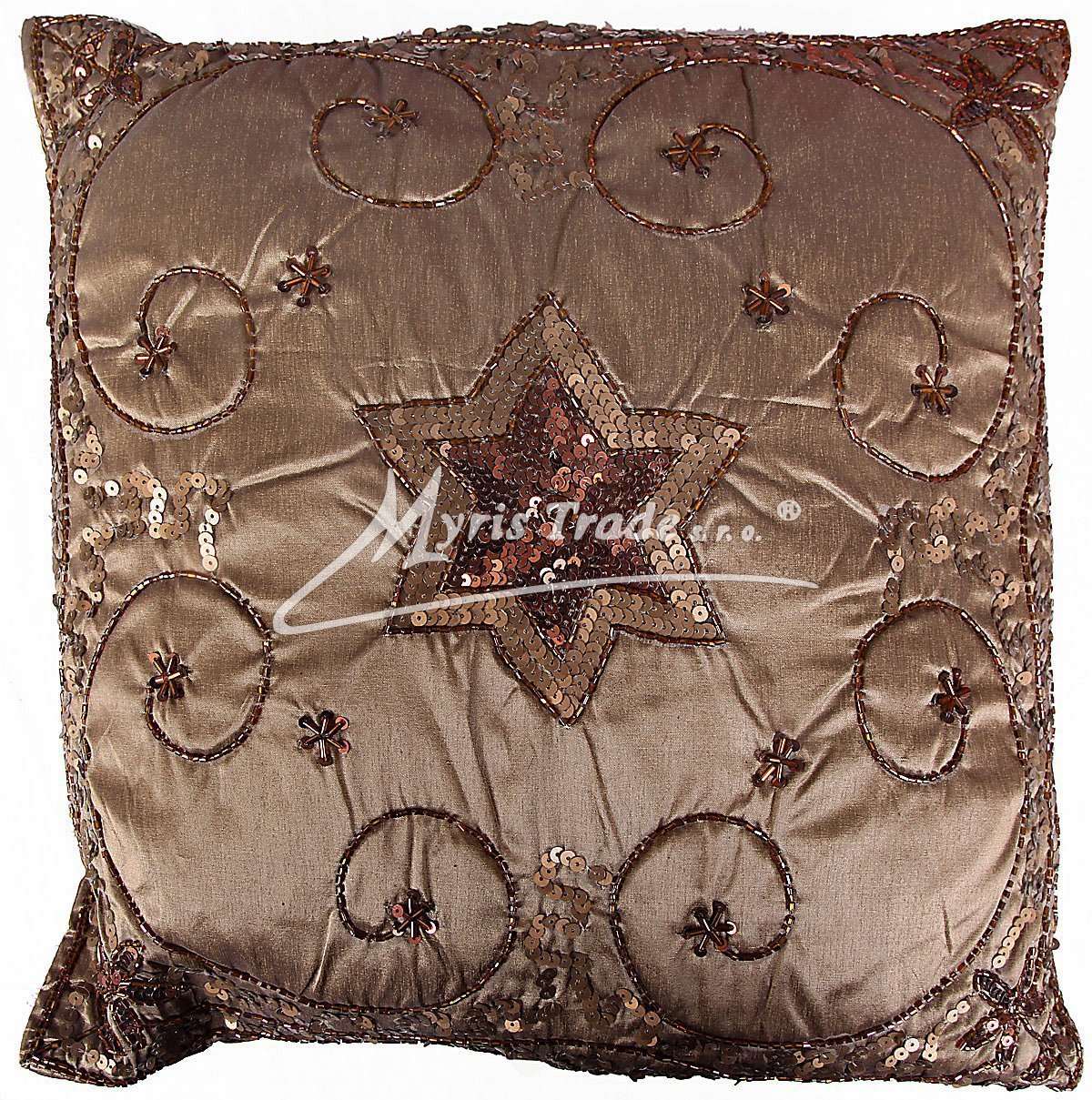 dekorační, ručně vyšívaný, bohatě zdobený potah na polštářek v bronzové barvě