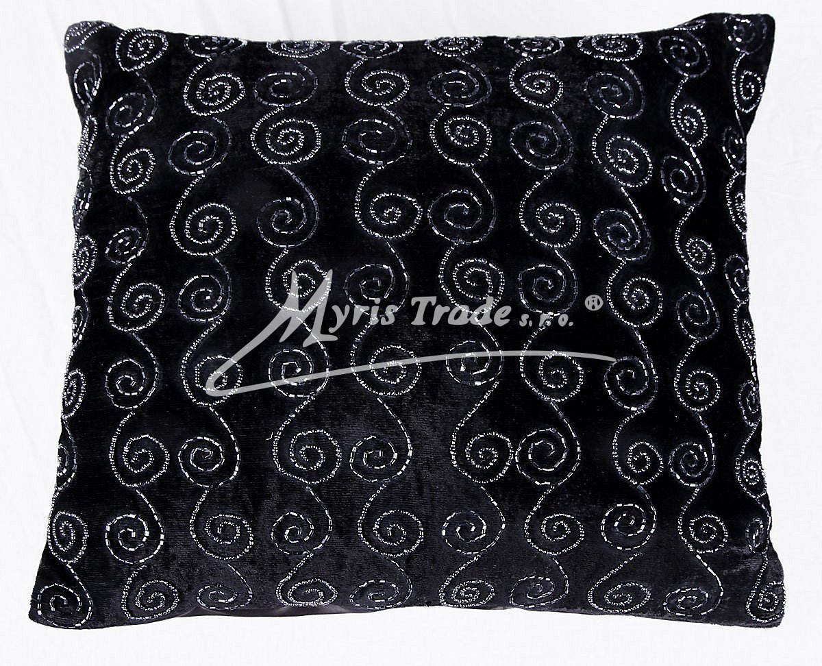 dekorační, ručně vyšívaný potah na polštářek v černé barvě