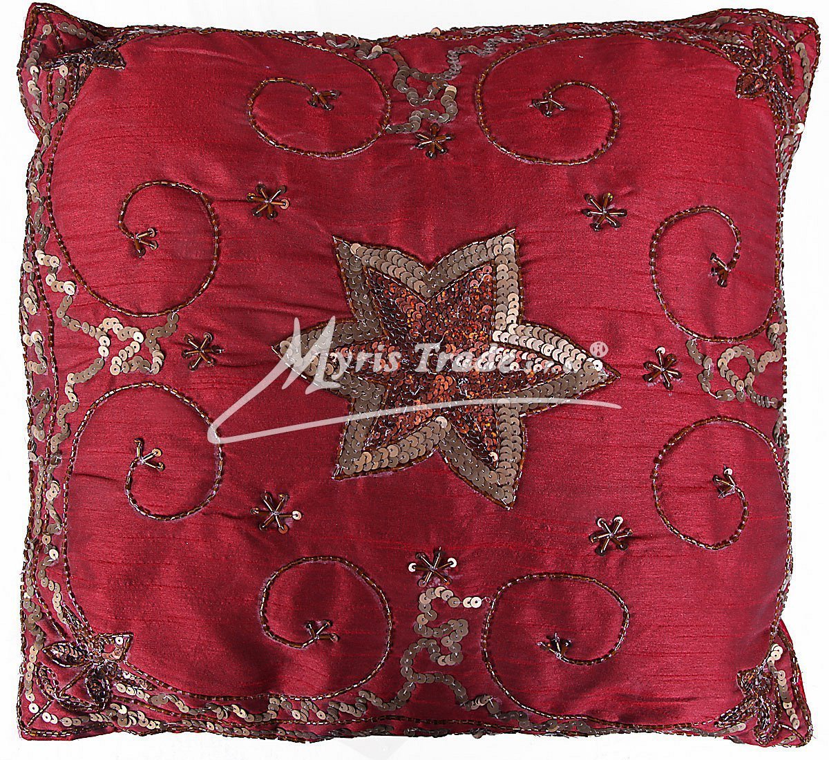 dekorační, ručně vyšívaný, bohatě zdobený potah na polštářek v barvě bordó