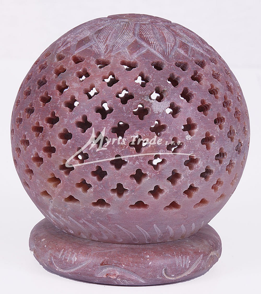 bohatě vyřezávaný svícen na čajovou svíčku je ručně vyroben z mastku, jednoho z nejměkčích kamenů