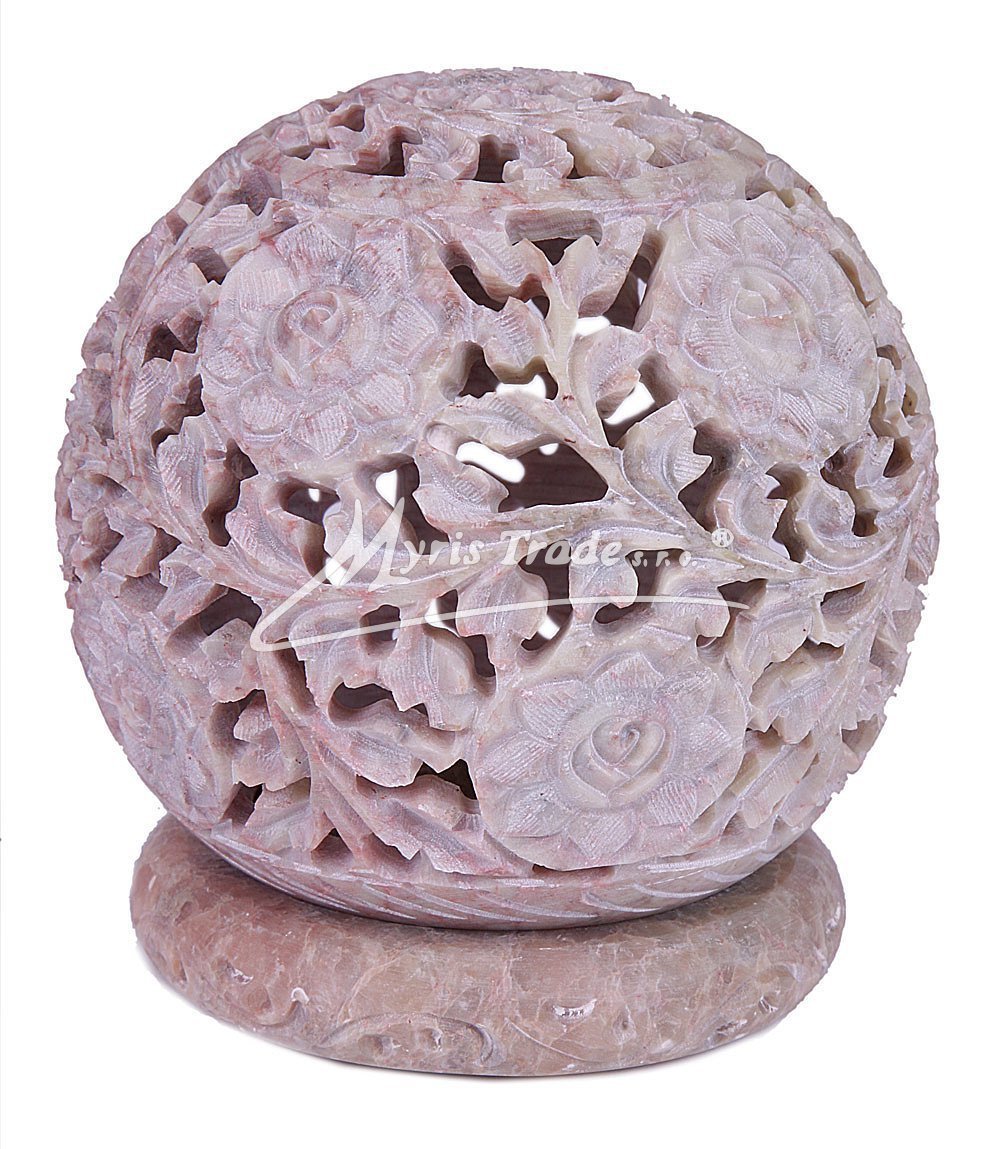 bohatě vyřezávaný svícen na čajovou svíčku je ručně vyroben z mastku, jednoho z nejměkčích kamenů