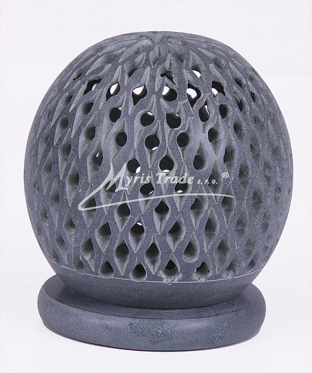 bohatě vyřezávaný svícen na čajovou svíčku je ručně vyroben z šedého mastku, jednoho z nejměkčích kamenů
