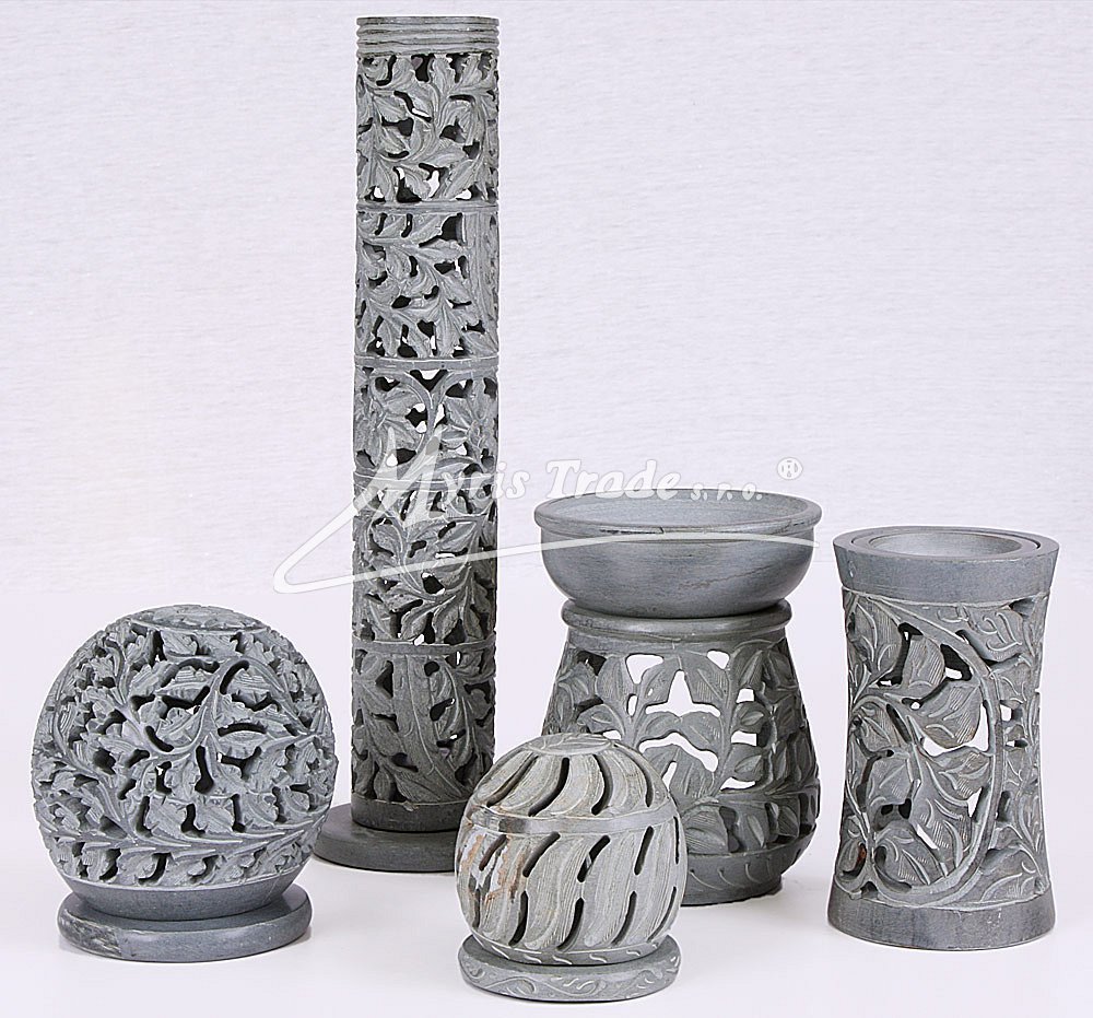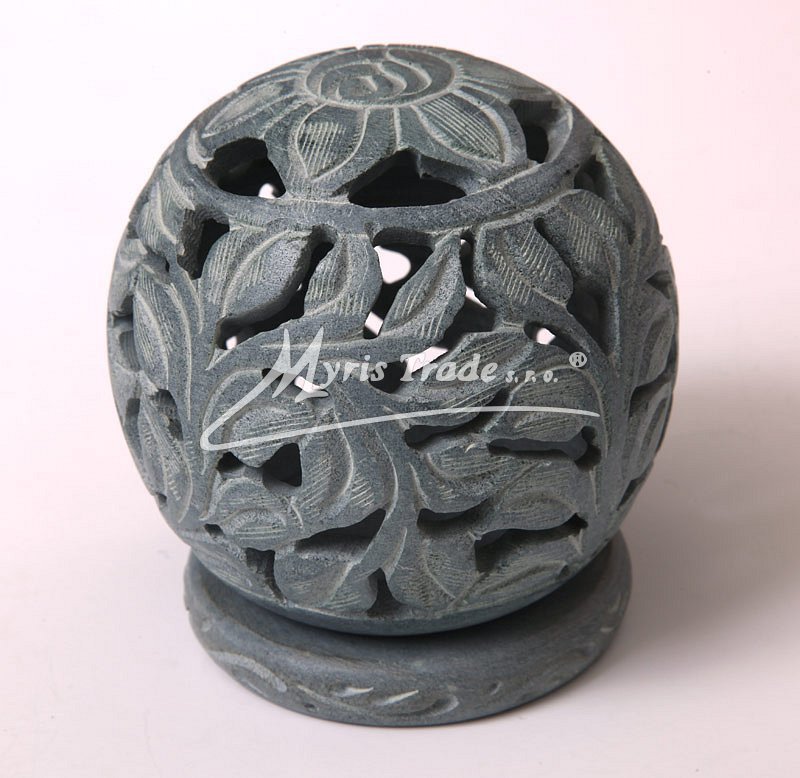 bohatě vyřezávaný svícen na čajovou svíčku je ručně vyroben z šedého mastku, jednoho z nejměkčích kamenů