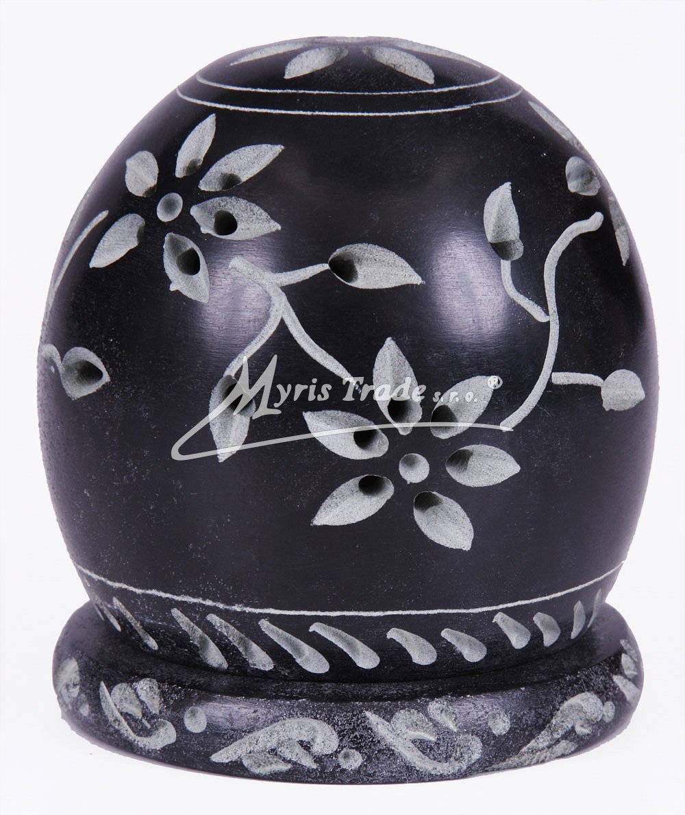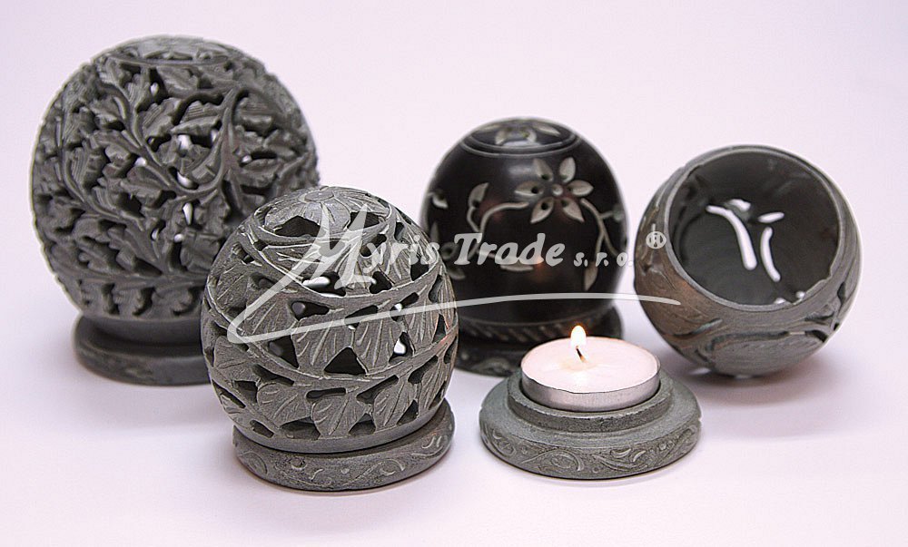 elegantně vyřezávaný svícen na čajovou svíčku je ručně vyroben z černošedého mastku, jednoho z nejměkčích kamenů