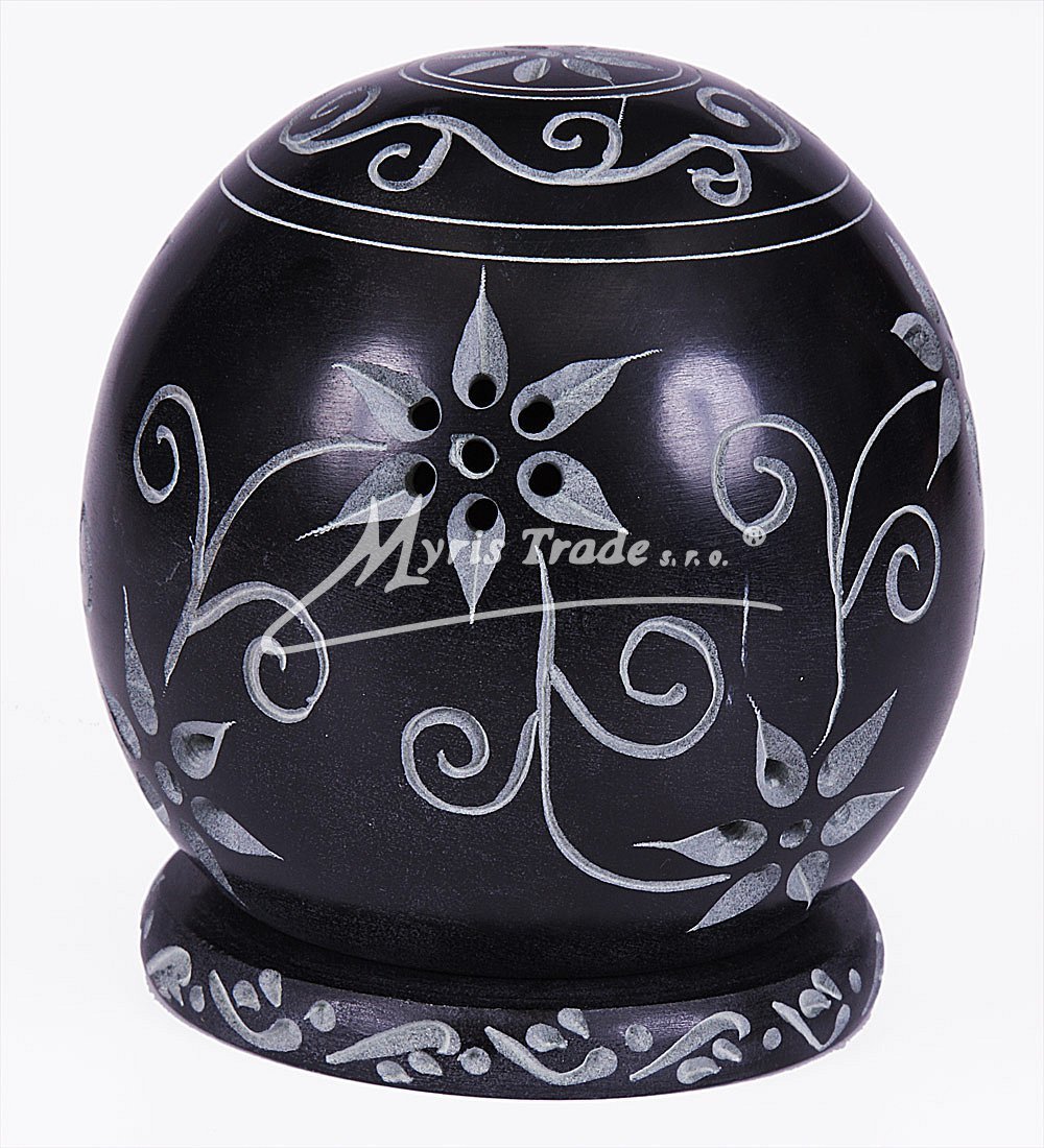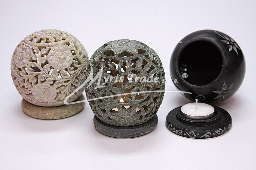 elegantně vyřezávaný černošedý svícen na čajovou svíčku je ručně vyroben z mastku, jednoho z nejměkčích kamenů