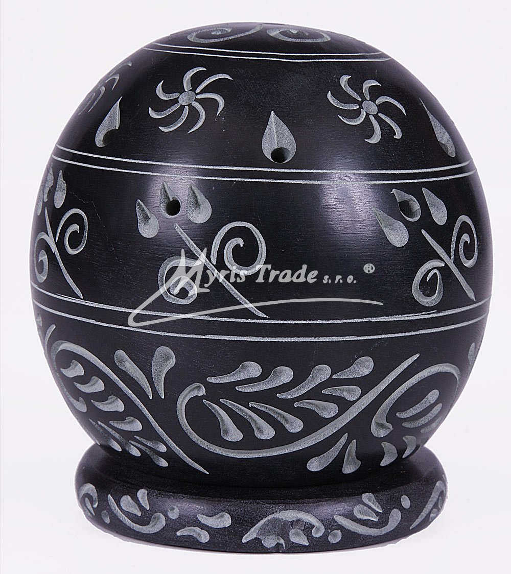 elegantně vyřezávaný černošedý svícen na čajovou svíčku je ručně vyroben z mastku, jednoho z nejměkčích kamenů