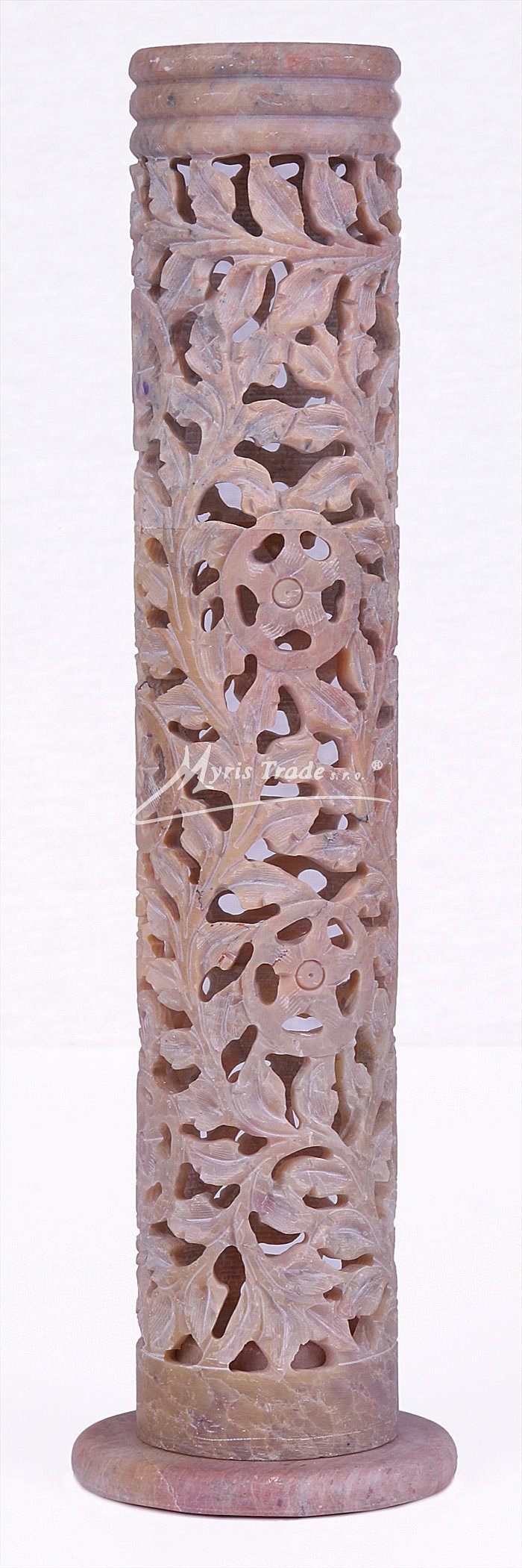 bohatě vyřezávaný stojan na vonnou tyčinku je ručně vyroben z mastku, jednoho z nejměkčích kamenů