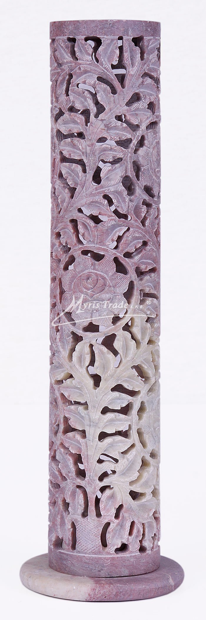 bohatě vyřezávaný stojan na vonnou tyčinku je ručně vyroben z mastku, jednoho z nejměkčích kamenů
