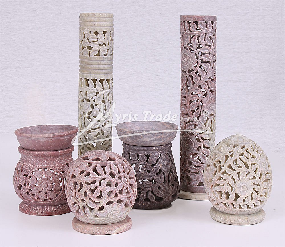bohatě vyřezávaný stojan na vonnou tyčinku je ručně vyroben z mastku, jednoho z nejměkčích kamenů