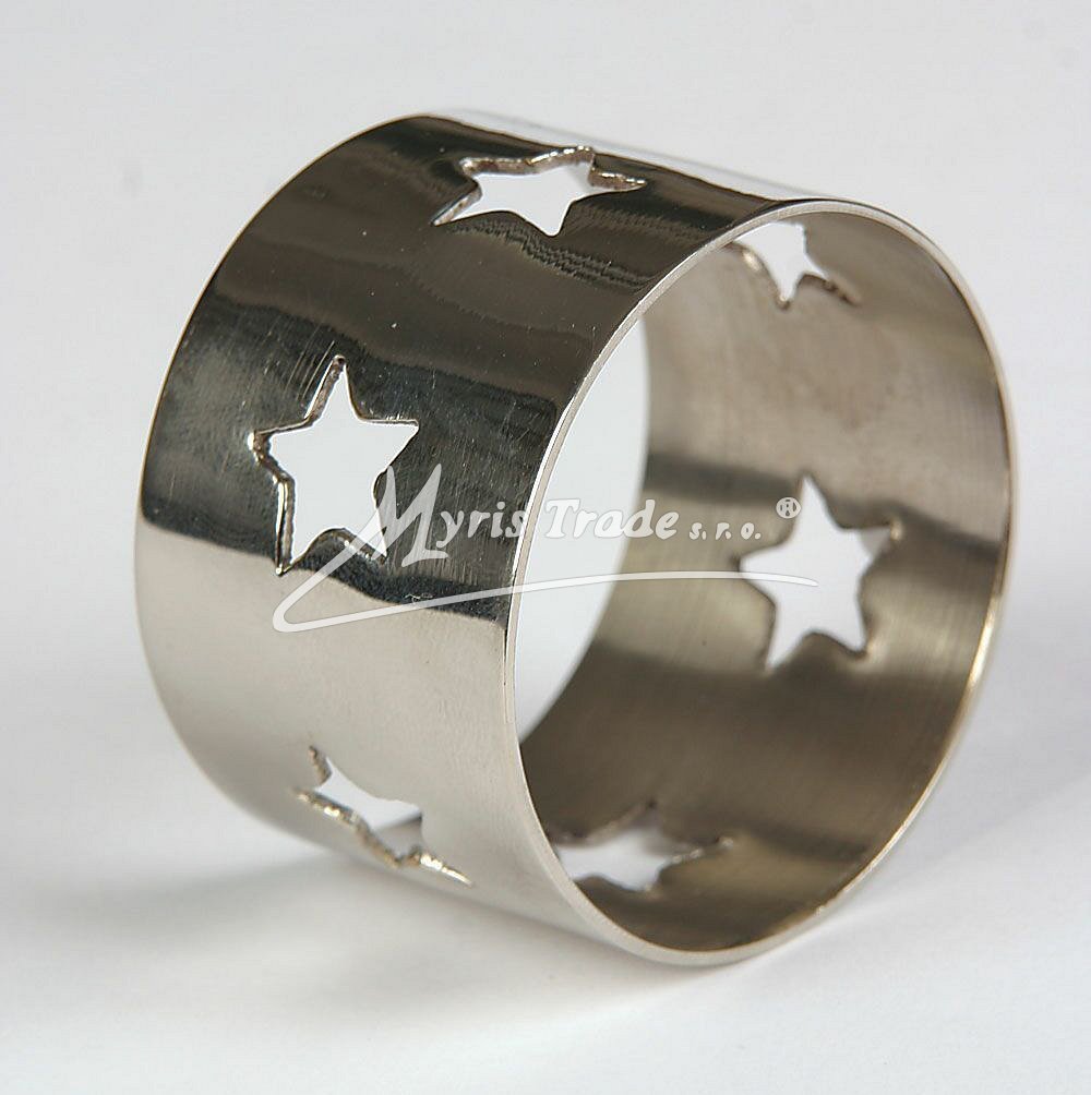 ozdobný kroužek na ubrousek ze stříbrného kovu, hladký s ozdobnými hvězdičkami sada 4 kusů za zvýhodněnou cenu průměr: 4,50 cm