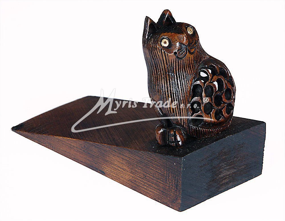 dřevěná zarážka do dveří s figurkou kočky
