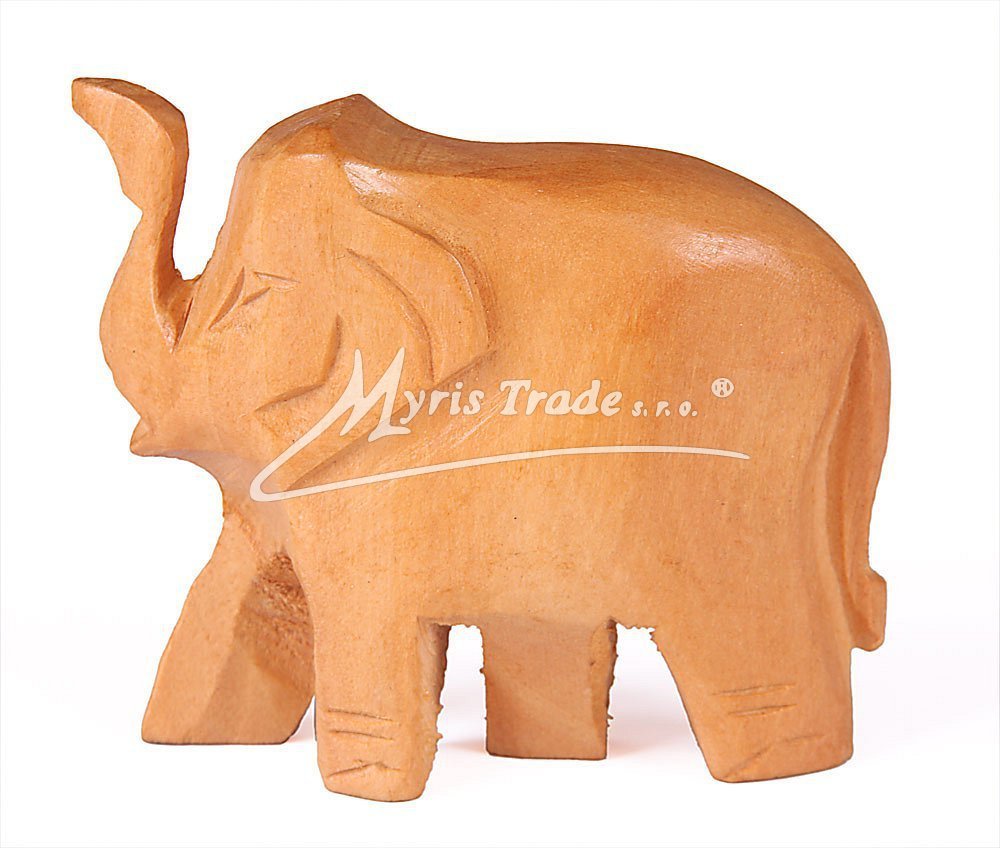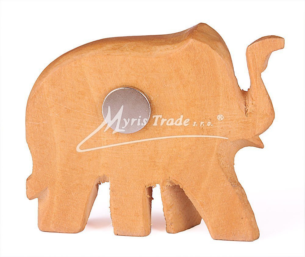 magnet s ručně vyřezávanou figurkou slona v provedení ze světlého dřeva