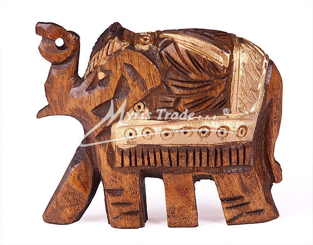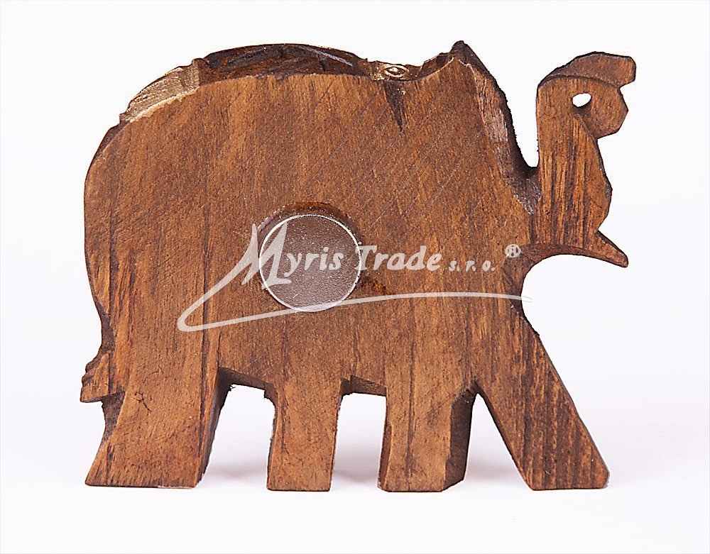 magnet s ručně vyřezávanou figurkou slona v provedení z tmavého dřeva, zdobený