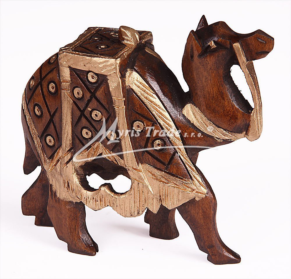 velbloud zdobený - ručně vyřezávaný, tmavé dřevo, zlacený