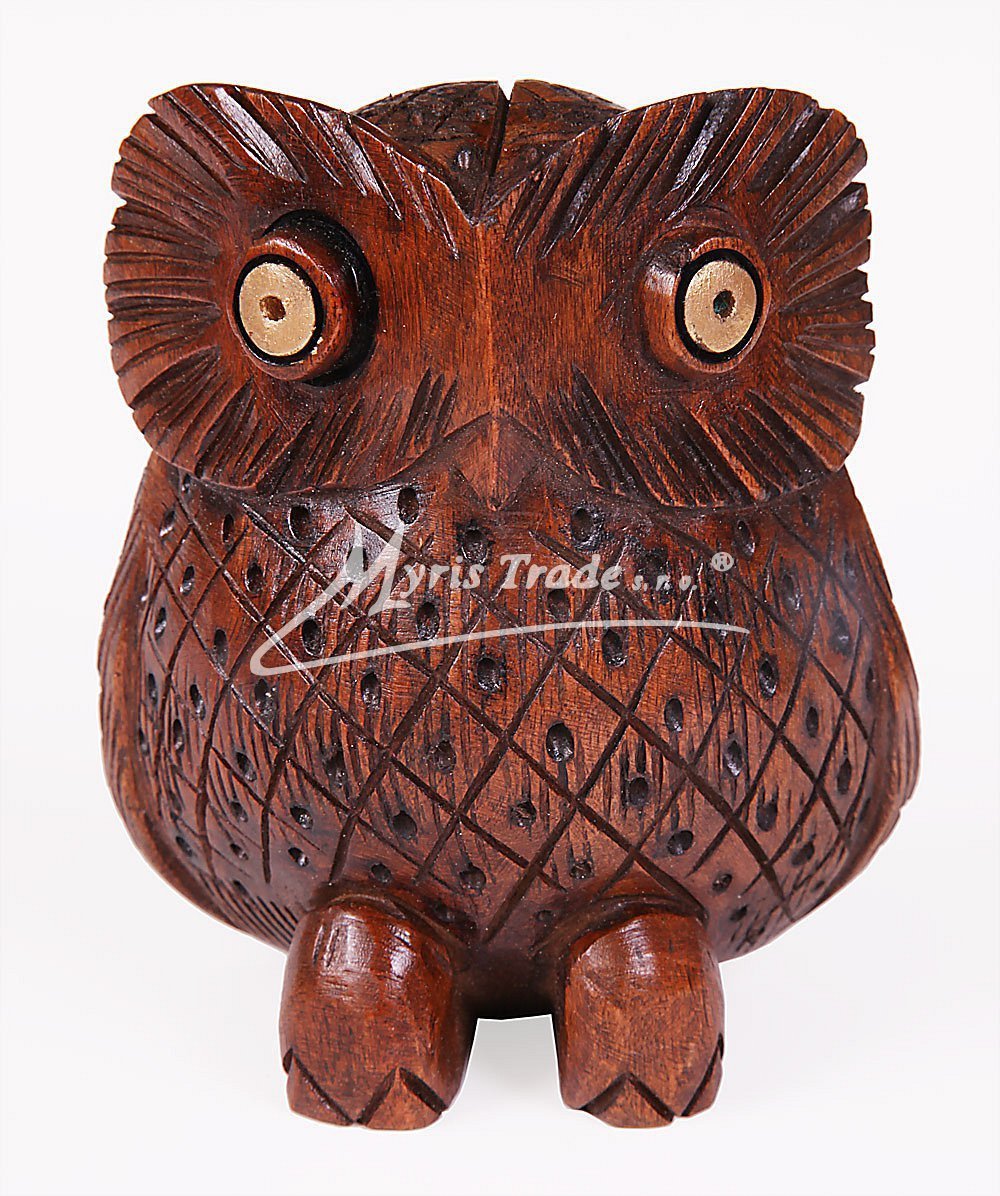 sova dřevěná - masivní, ručně vyřezávaná, tmavé dřevo
