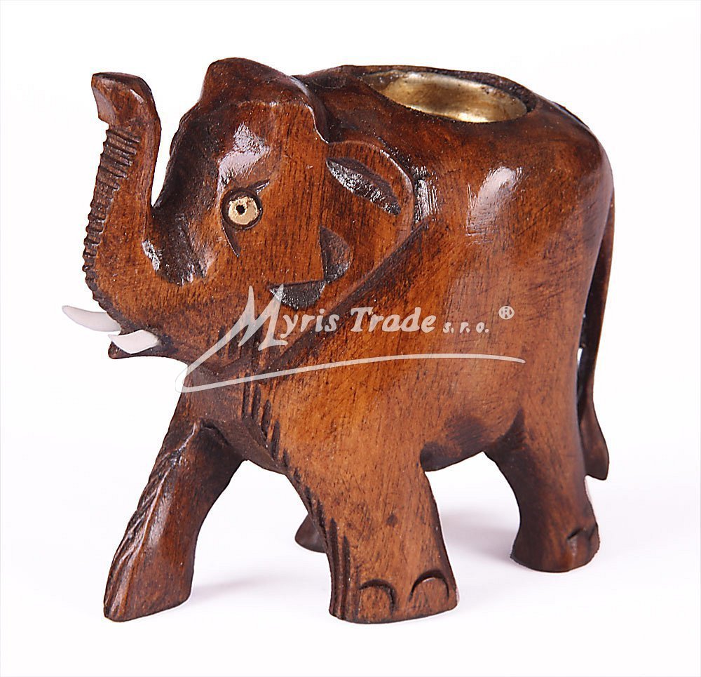 ručně vyřezávaná figurka slona z tmavého dřeva je současně stojánek pro vonného vánočního františka a 2 vonné tyčinky