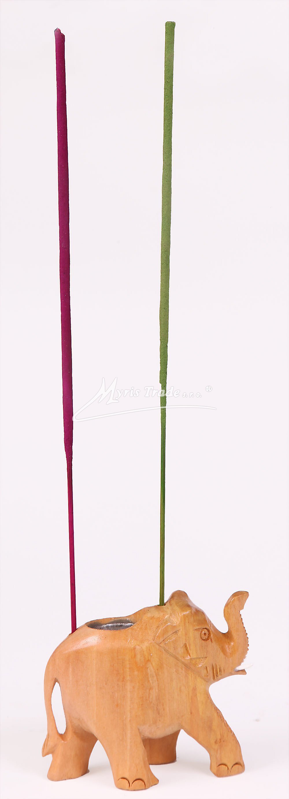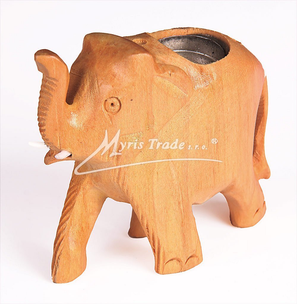 ručně vyřezávaná figurka slona ze světlého dřeva je současně stojánek pro vonného vánočního františka a 2 vonné tyčinky