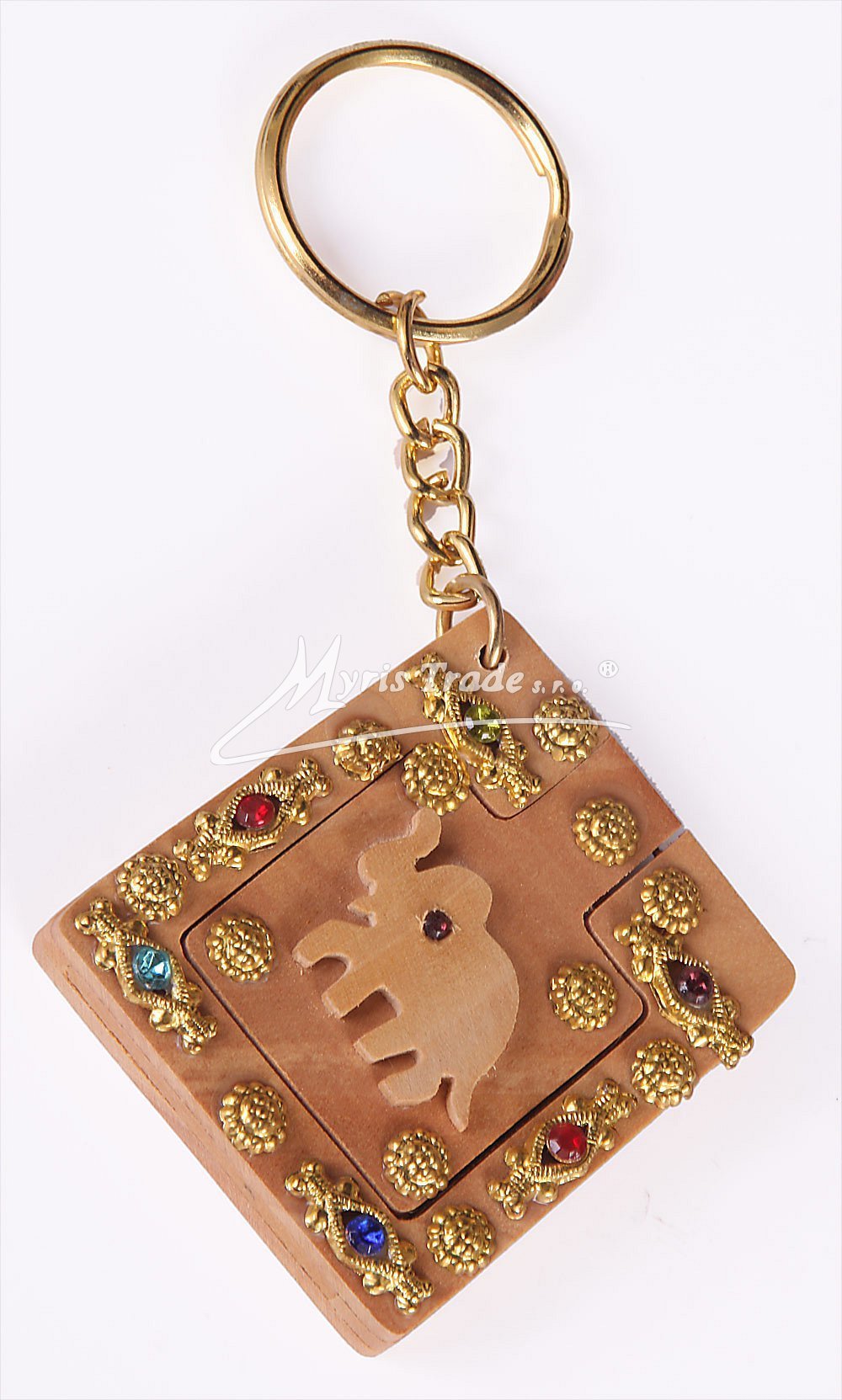 klíčenka se zrdcátkem, zdobená mosazí a drobnými kaminky - motiv slon