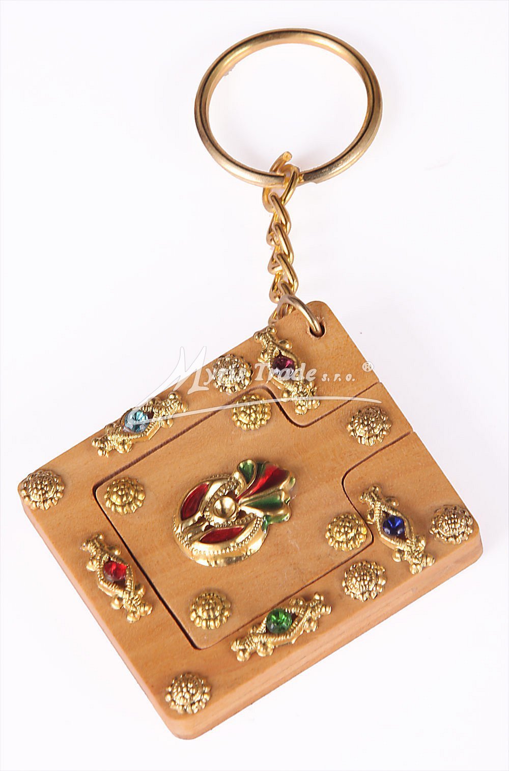 klíčenka se zrdcátkem, zdobená mosazí, drobnými kaminky a emblémem