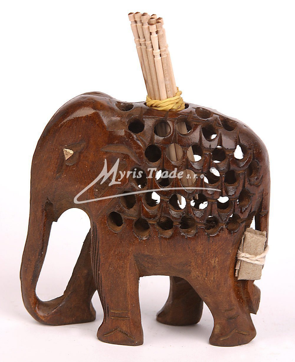 slon - dřevěný, ručně vyřezávaný stojánek na párátka, tmavé dřevo