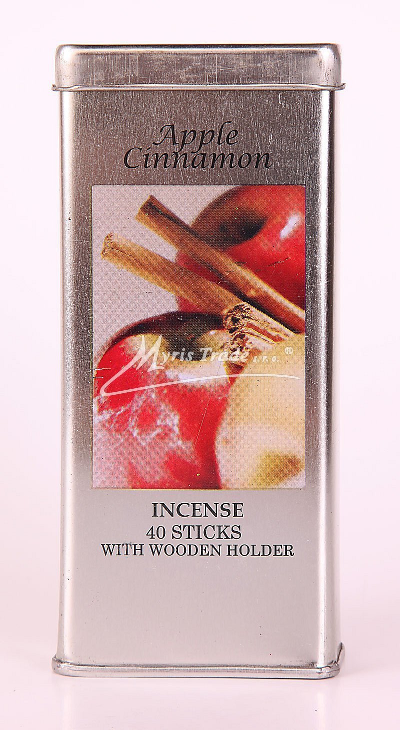 40 kusů vysoce kvalitních vonných tyčinek v dárkovém balení. Malá plechová hranatá krabička obsahuje kromě tyčinek i malý dřevěný stojánek.