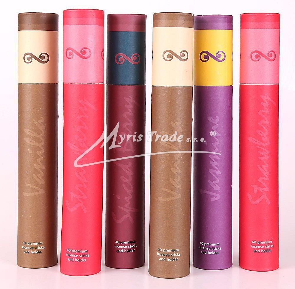 6 klasických papírových balení, které každé obsahuje 40 kusů vysoce kvalitních vonných tyčinek v různých vůních. V každém balení je malý kamenný stojánek.