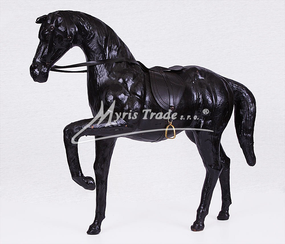 soška koně v koženém provedení a černé barvě