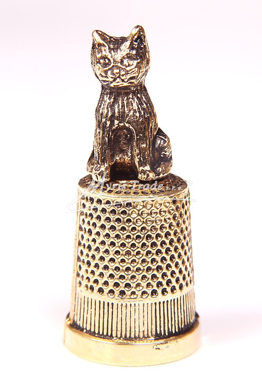 náprstek s ozdobou - figurka kočky, pozlacený