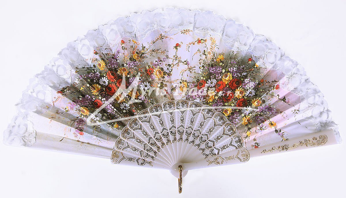 plastový vějíř s květinovým motivem a bílou krajkou lze použít nejen jako krásnou dekoraci, ale je i plně funkční