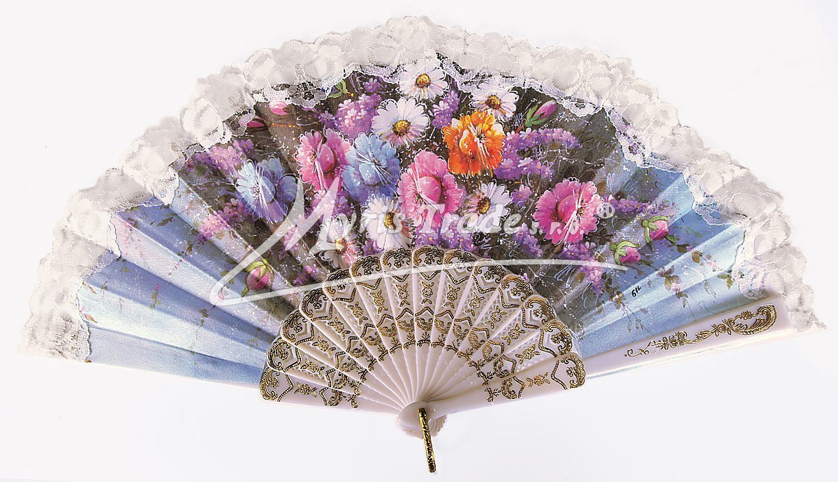 plastový vějíř s květinovým motivem a bílou krajkou lze použít nejen jako krásnou dekoraci, ale je i plně funkční