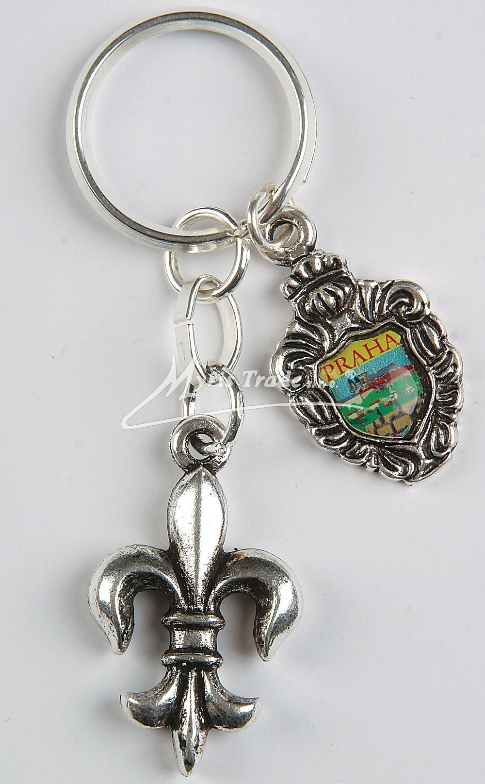postříbřená klíčenka s přívěskem lilie a motivem Prahy
