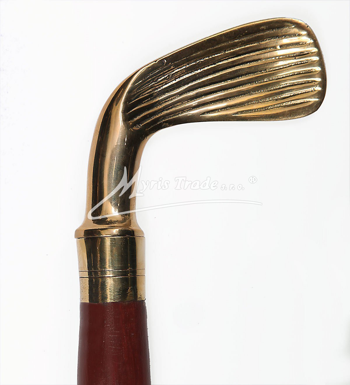 dekorativní vycházková hůl z masivního dřeva a s rukojetí ve tvaru golfové hole lze složit na 3 díly