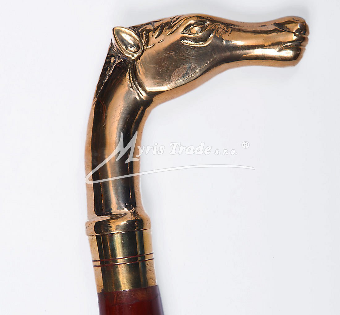dekorativní vycházková hůl z masivního dřeva a s rukojetí ve tvaru hlavy koně lze složit na 3 díly